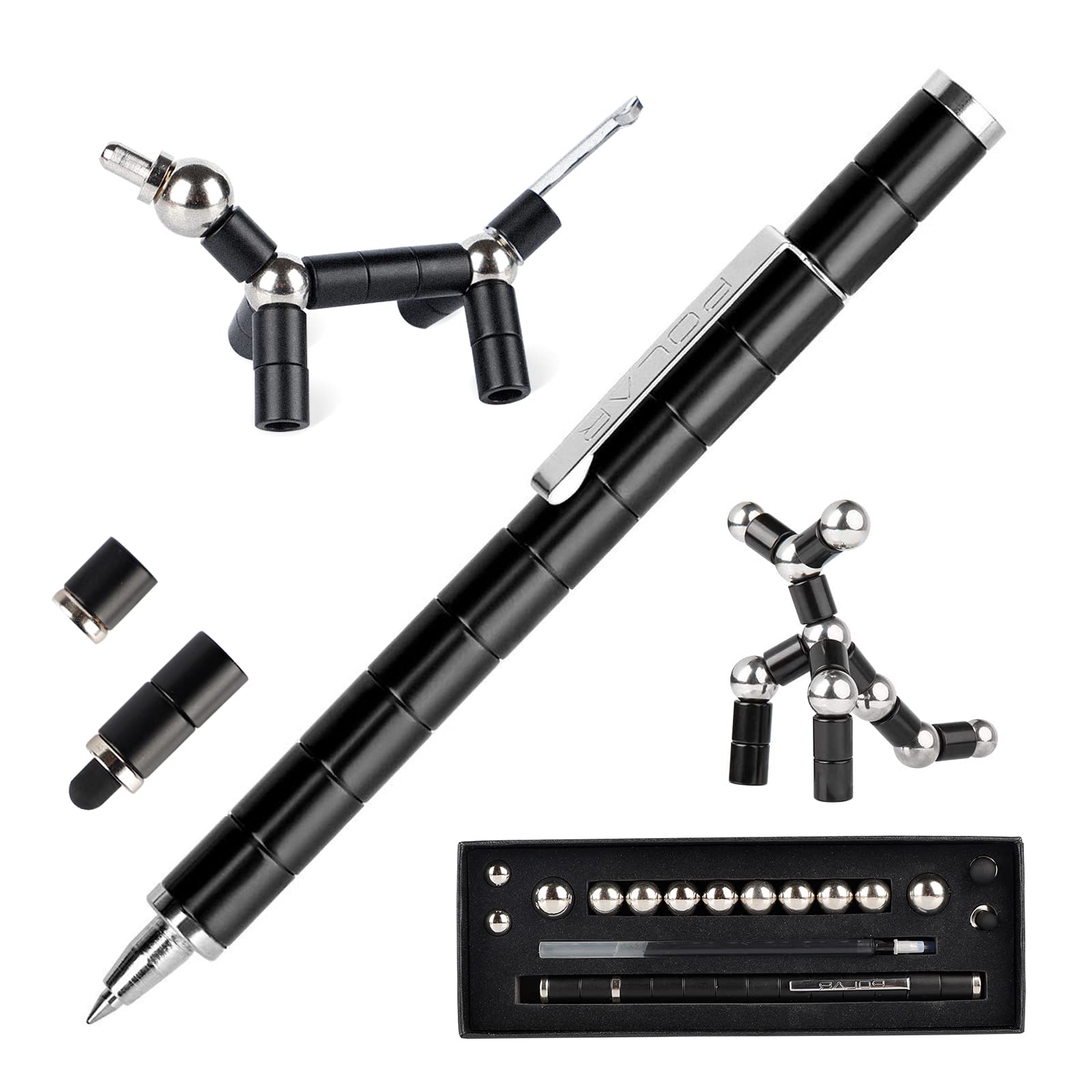 - 1x Magnetic Fidget Pen (13x magnetic Tubes, 2x magnet end caps, 1x magnetic pen clip, 1x gel pen cartridge)