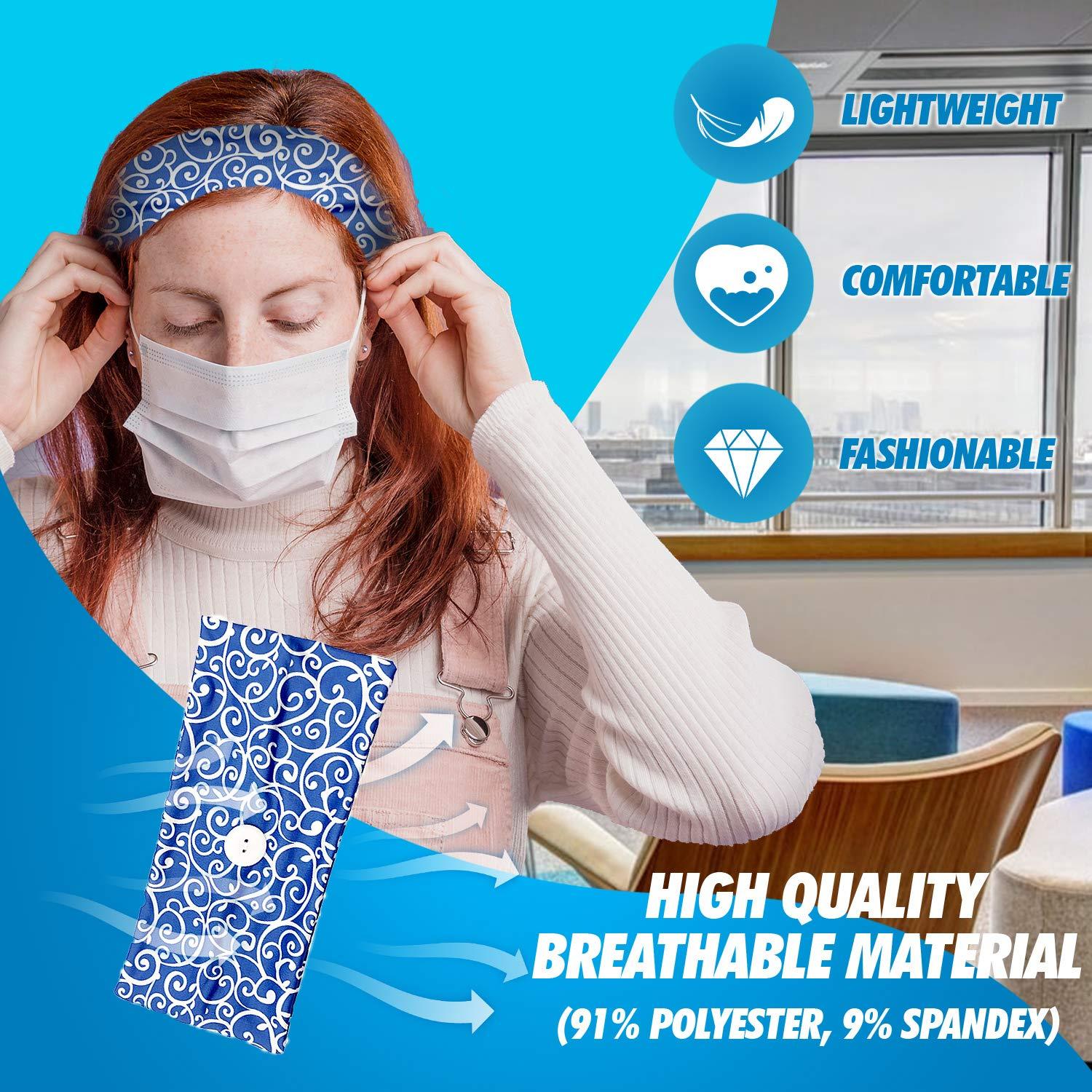 - Button Headband Holder: No pains, make our ears more comfortable. You can wear it all day and it will stay in place. It is made of high-quality breathable material.